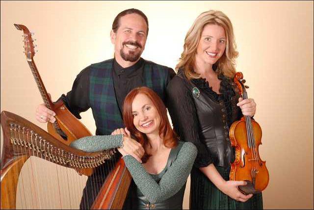 The St. James Concert Series presents Golden Bough Celtic Folk Trio, an ensemble of modern-day minstrels, in a program which will feature songs from their recordings, pieces from their upcoming CD, lively sing-alongs, ballads, and rousing instrumental pieces. Backing themselves with an array of acoustic instruments: Celtic harp, guitar, octave-mandolin, accordion, violin, penny-whistle and bodhran (the Celtic hand drum) Margie Butler, Paul Espinoza, and Kathy Sierra blend their voices in the pristine harmonies that have become a Golden Bough trademark.