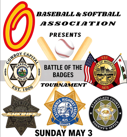 Originally a softball game between members of the Oakdale Police Department and the Oakdale Fire Department, the competition has expanded and has become known as the “Battle of the Badges” tournament. It is an annual event and is a primary fundraiser for OBSA, Oakdale Baseball & Softball Association.