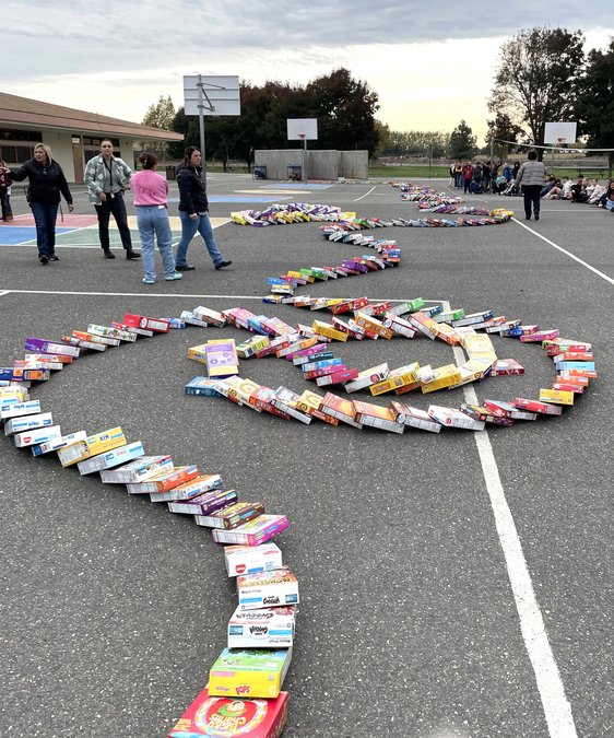 “The Sunshine Committee is a committee responsible for building the morale of Sierra View staff and students. We try to promote kindness in and around our school and community,” explained kindergarten teacher Nancy Hill, a Sunshine Committee member. “We were looking for a fun way to help fill the pantry at the Center for Human Services with cereal. We thought promoting a giant domino fall, using boxes of cereal, would excite and motivate our students to collect cereal and in the process, they would have the opportunity to help someone in need.”