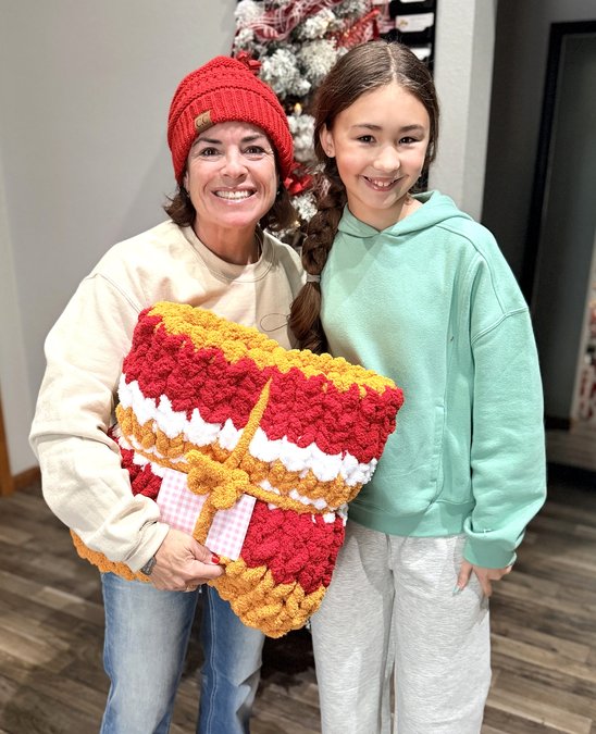 “I tell her all the time, when she’s making them, my mom would be losing her mind over this,” Candace said of the overwhelming support and orders they’ve received for the knitted throws.