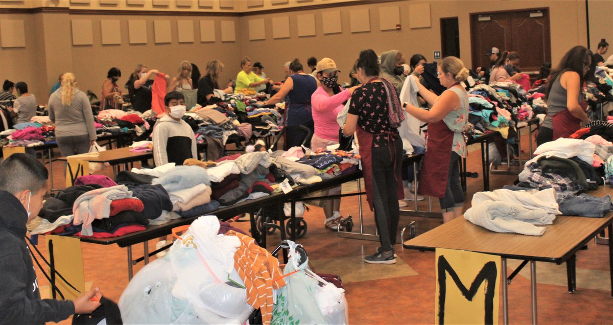 The three-hour window for residents to pick up clothing and accessories saw a steady stream of people coming in to the Community Center and Ballard said they were already waiting in line shortly after 8 a.m.