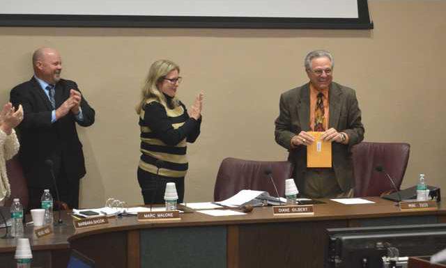 “Our new member is here tonight,” Tozzi graciously said, gesturing to newly elected board member Larry Betschart. “I think he is going to be an excellent addition to this board. He cares a lot about education and that’s great. All I can tell you is that my 16 years were wonderful, because we have great teachers. We have great administrators and we’ve got a great community and it was easy being up here because all of you, everybody here made this 16 year trip just a wonderful trip. I appreciate all the wonderful things you’ve done for the community, all the wonderful things you’ve done for education, all the things you’ve done for the students. Thank you very much.”
