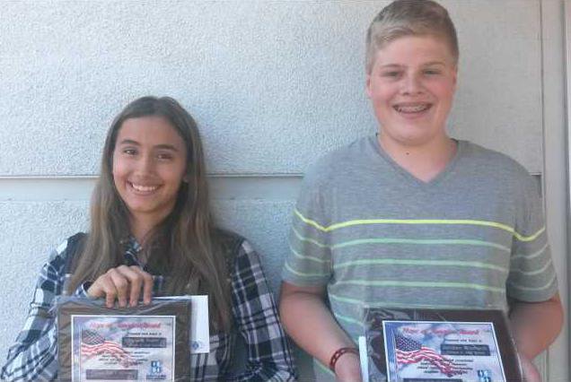 Oakdale Junior High School students Leilani Roper and Jordan Womack were recently named the recipients of the Kiwanis Hope of America award by the Kiwanis Club of Oakdale. The students were chosen for the honor based on their grades, leadership, character and caring for those around them.