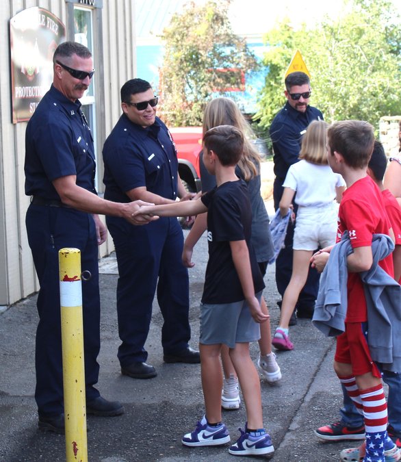 It has been 22 years since the terrorist attacks that saw hijackers take control of four planes on Sept. 11, 2001; an act that claimed thousands of lives and led to the War on Terror. Over two decades later, Americans nationwide paid their respects on Monday, which was observed as Patriot Day. On Monday morning, Sept. 11 folks gathered outside the historic Knights Ferry Fire House No. 2 – which also serves now as Oakdale Fire Protection District Station 29 – for a memorial ceremony. Those in attendance included several residents from Knights Ferry and surrounding areas, as well as students and staff from the nearby Knights Ferry Elementary School. Four crew members at the fire station hosted the event and performed a flag ceremony, as well as led the crowd in observing a moment of silence for those lost at that fateful day.