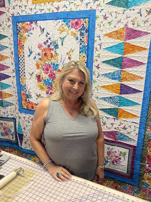 “I make all the samples because I buy all the patterns. I coordinate the way I like to coordinate and make my own bundles to make the kits,” she said of putting her own creative touch on the quilt kits she sells.