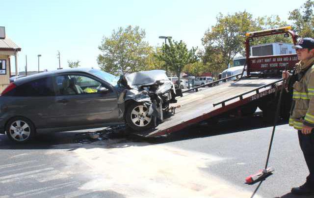 A crash just before noon on North Yosemite Avenue, near the main intersection with F Street, saw traffic tied up while crews tended to one person who went to the hospital and cleaned up debris from the accident.