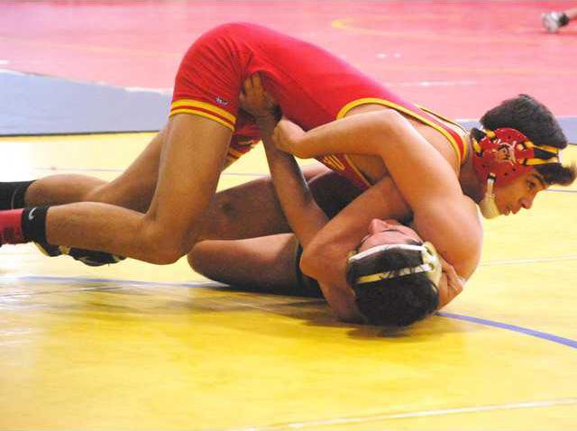 Oakdale’s Ricky Torres made short work of all opponents he faced at the Valley Oak League Wrestling Championships at Central Catholic High School on Saturday. The 132-pounder claimed first place in his weight division and the Mustangs as a team repeated as VOL champs.