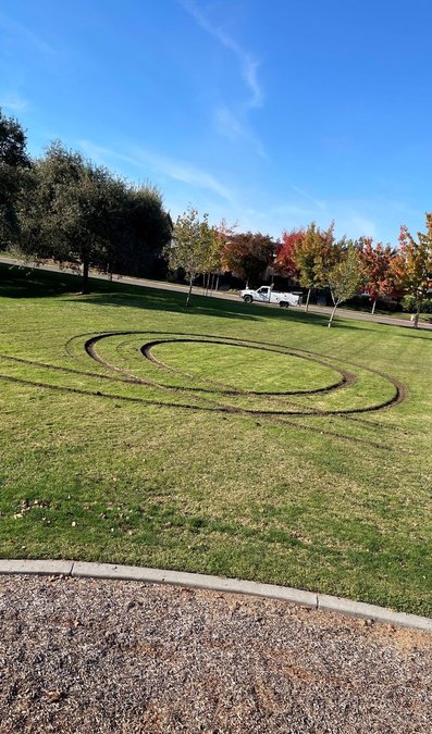 An OPD Facebook post detailed a series of vandalism incidents over the weekend where someone drove through Medlen Park, leaving tire tracks and destroying the grass.