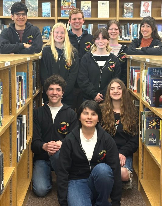The Oakdale High School Academic Decathlon competing team will travel to Santa Clara this week, representing Stanislaus County in the State Competition set for March 19 through 22. Photographed, clockwise from back row, Cristian Cornejo Plascencia, Camilla Badger, Austin Speiller, Teagan Malcom, Brenna Franca, Iyska Rangel, Allison Speiller, Perla Esquivel Plascencia and Jack Byron. The OHS decathletes captured the Stanislaus County title for the fifth consecutive year in competition in early February.