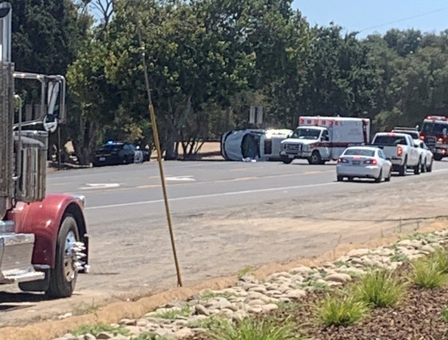Fire, ambulance and police units responded to a reported two-vehicle crash about noontime Wednesday, Aug. 4. The incident occurred near the intersection of River and Rodden roads along Highway 120 just north of Oakdale. One vehicle was reported to be overturned and another on its side. The California Highway Patrol classified the incident as a minor injury accident. Traffic was tied up during the rescue and clean-up operations and tow trucks were also dispatched to the scene to clear away the vehicles.