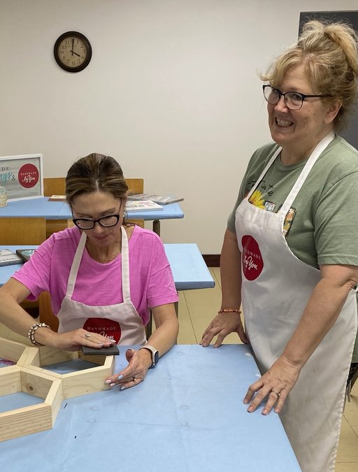 “I use stencils, I’m not an artist,” she continued. “The only thing I can paint by hand is sunflowers because I love them. So, I can’t teach someone how to paint on a canvas, but I can teach them this.”