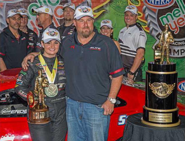 The Pro Stock category featured the greatest dramatics seen in recent years as Erica Enders-Stevens had a chance to be the first woman driver to win a championship in the category and the third to win a championship in any NHRA professional category. She was battling Jason Line for the Pro Stock championship. And as fate would have it and to the total delight of all the fans, they would meet in the final round for a “winner take all battle.” Both drivers performed amazing feats throughout eliminations to get to the final round, matching each other (elapse time wise) round by round. In her semi-final round match up against Johnathan Gray, Enders-Stevens took the win 6.494 at 213.67 mph to 6.524 at 212.29 mph. But, that run was historical in that for the only time in the history of the sport, both drivers left the starting line with perfect (0.000 second) reaction times. In the final round, Line in his Summit Camaro (ran a 6.496, 6.519 and 6.511) would take on Enders-Stevens in her Elite Motorsports Camaro (ran 6.94 throughout eliminations) and the competitive intensity was peaking. When the starting lights sequenced, both drivers were amped up and left early. Line left first (-0.011 to -0.002). Under the first or worst rule, Enders-Stevens took the win, as both drivers “red lighted” but Line “red lighted” first. Erica Enders-Stevens became the first woman in the history of the sport to win the Pro Stock season championship.