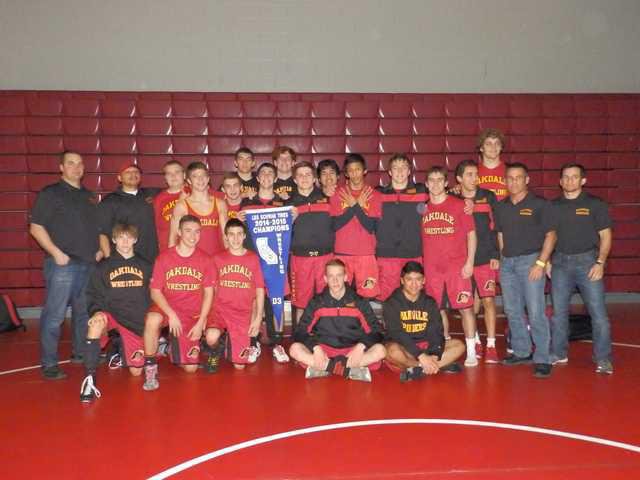 Oakdale earned a total of 24 wins on the day, 19 via pin. Earning pins in the finals were Abel Garcia, Miguel Ibarra (197), Wyatt Hjelm (222), Matt Kjeldgaard (287), Jake Abeyta (115), Logan Eaton (122), Nico Colunga (128), Trevor Williams (134) and Colby Harlan (147).