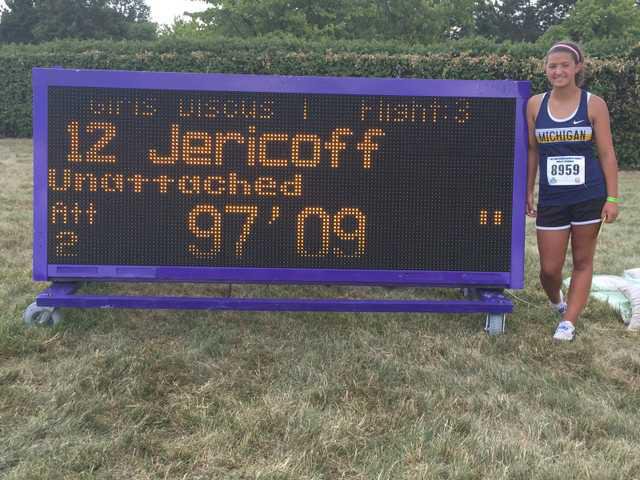 Jericoff threw for a personal best of 97 feet, nine inches on her second attempt.