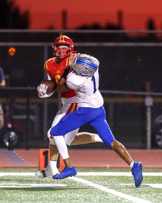 The second quarter saw one Oakdale touchdown and it came from Gavin Wyatt. With 7:03 remaining in the half, Wyatt scored on a six-yard carry to make it 27-0. Mountain House scored their first ever VOL points when quarterback Erin Foster connected with Kaden Ransohoff from 14 yards out. On the point after attempt Oakdale’s Caden Adams blocked the attempt with 1:32 left in the half. Oakdale went into the half with a 27-6 lead.