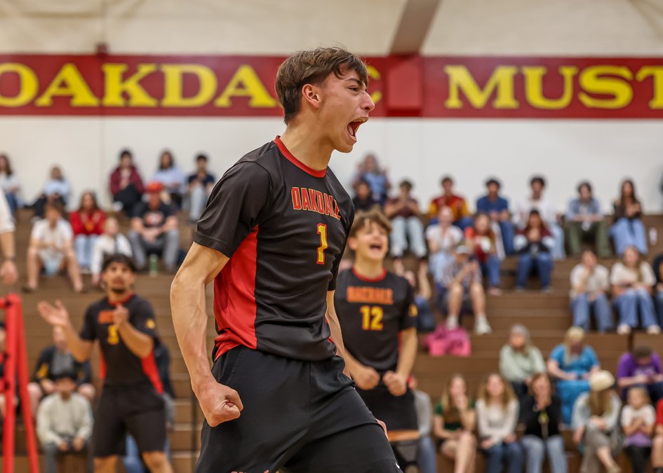 With a dramatic sequence that went back-and-forth for nearly one minute, Iker Juarez ultimately hit the ball off a Lancer that fell to the gym floor for a point making it a 17-10 deficit for Oakdale. Later, down 21-11 Juarez once again got another point for Oakdale when he hit it between two Lancers. However, Oakdale would lose the second set 25-12.