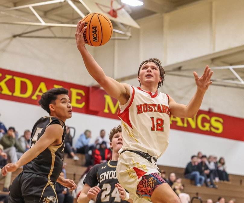 It was a winning home performance; Oakdale High School’s varsity basketball boys defeated Enochs 69-62 on Dec. 9. The Mustangs were led by Bryce Busam with 33 points. The junior guard punished the visitors from the perimeter, the paint and at the free throw line. Busam made eight free throws on the night as part of his point total.