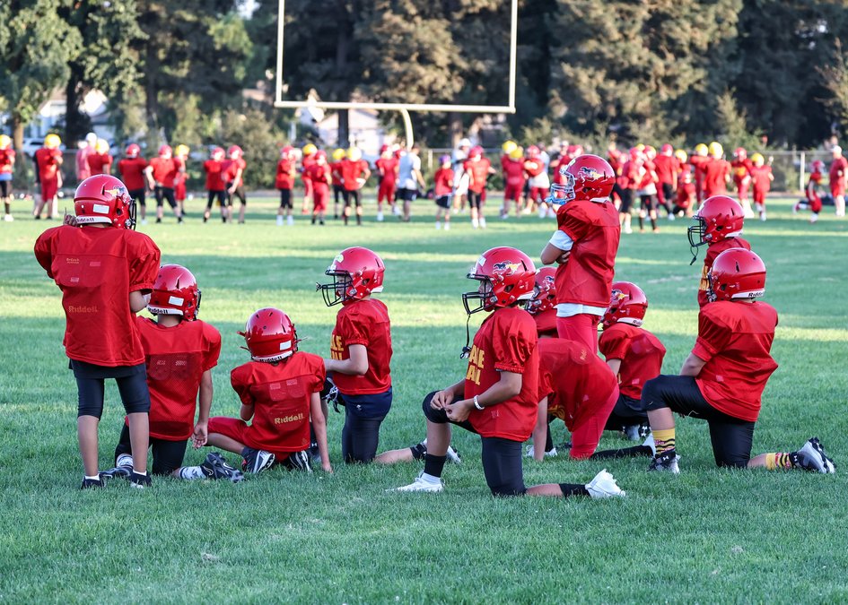 The Oakdale Stampede Youth Football program offers the sport at multiple levels, with the youngsters learning the fundamentals of the game. Many that have come through the program go on to play at the high school level in The Corral. On a recent afternoon, the Stampede players created a sea of red as they awaited their turn on the field. Elsewhere, coach Matt Budine was working with a group of youngsters, helping get them in position on the field according to the play call.